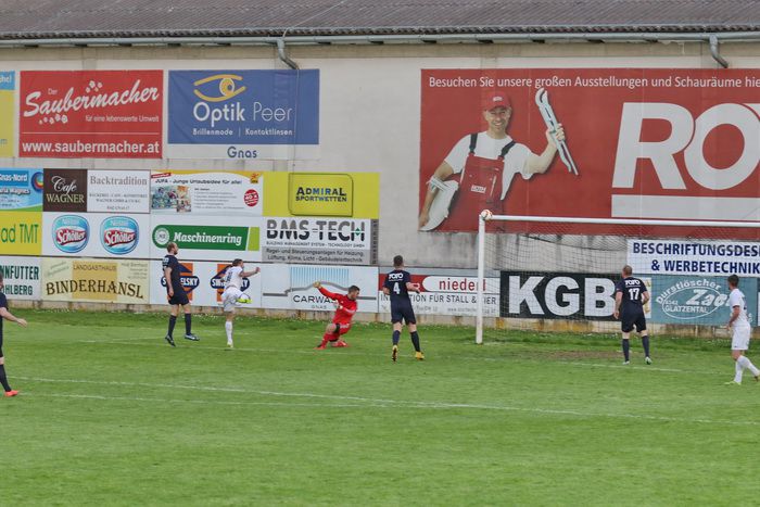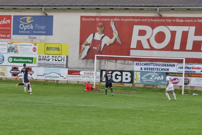 Das Match begann flott, mit spielerischem Übergewicht aufseiten der Gnaser, die auch zur ersten guten Torchance in der 17. Minute kamen. Nach einem Freistoß von Matthias Schadler traf Stefan Strohmaier per Kopf die Querlatte. In der 21. Minute setzte sich Stefan Strohmaier über die rechte Seite durch und passte zur Mitte. Raphael Kniewallner rutschte am Leder vorbei.