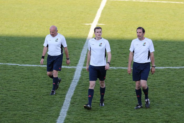 Schiedsrichter Thomas Gremsl (mitte) mit seinen Assistenten Krainer (rechts) und Hofer.