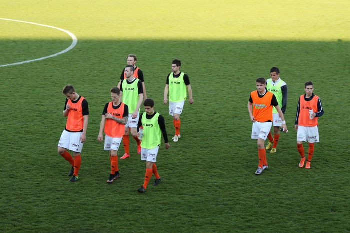 Einen Wohlmuth-Freistoß köpfelt Kapitän Christoph Haas rechts vorbei....