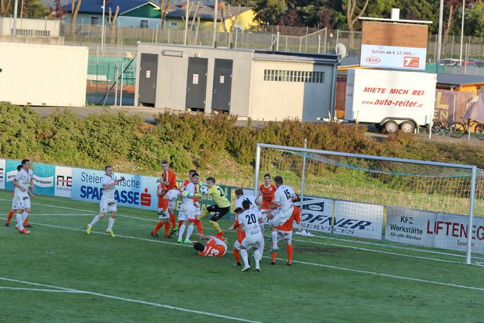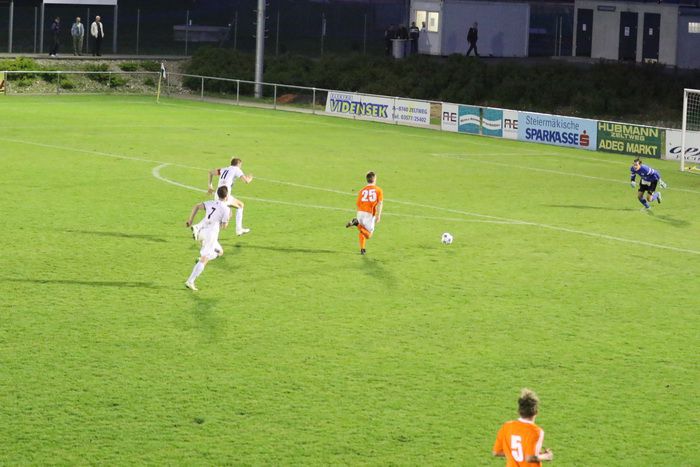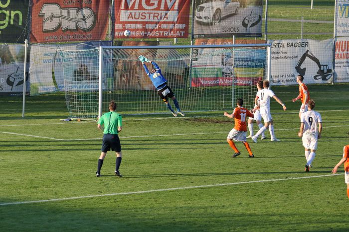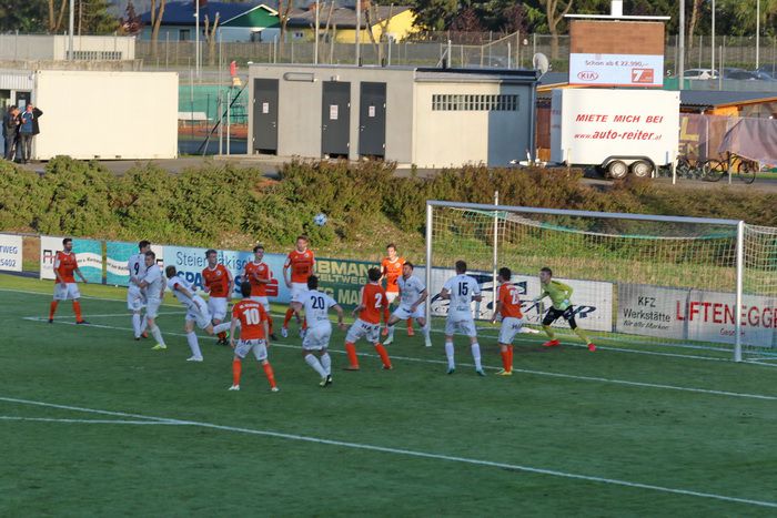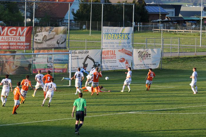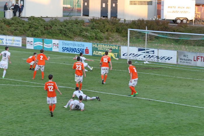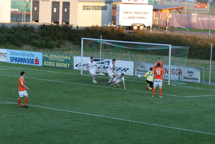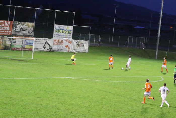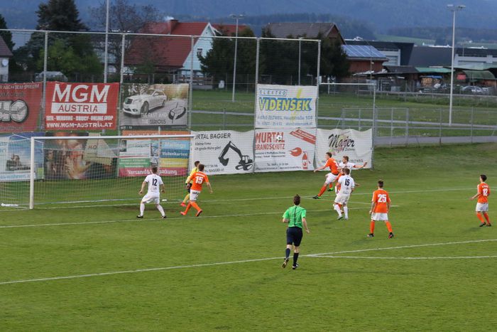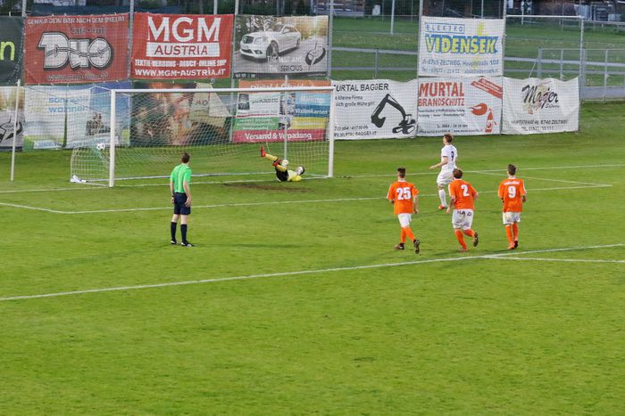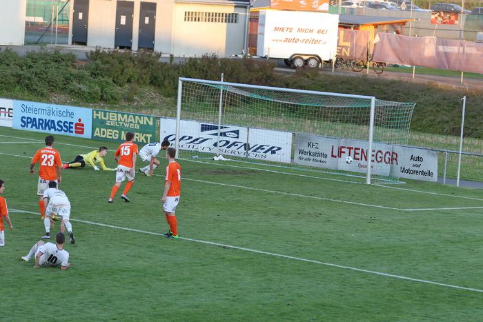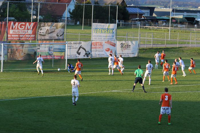 Die Gastgeber hatten wenig später die Antwort parat. Ein Steilpass auf der linken Seite, dann ein Pass zur Mitte und Markus Zmugg kam aus rund 12 m zum Abschluss. Der Ball streifte noch die Oberkante der Querlatte (15.). In der 21. Minute faustete Goalie Roth einen von Marc Klicnik getretenen Freistoß aus dem Gefahrenbereich.