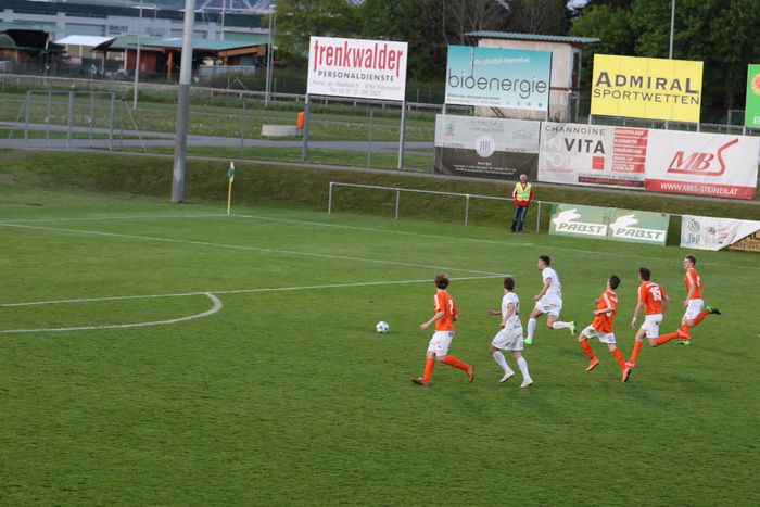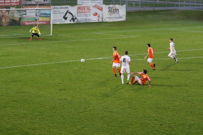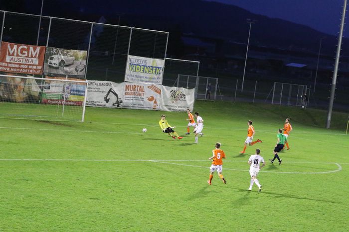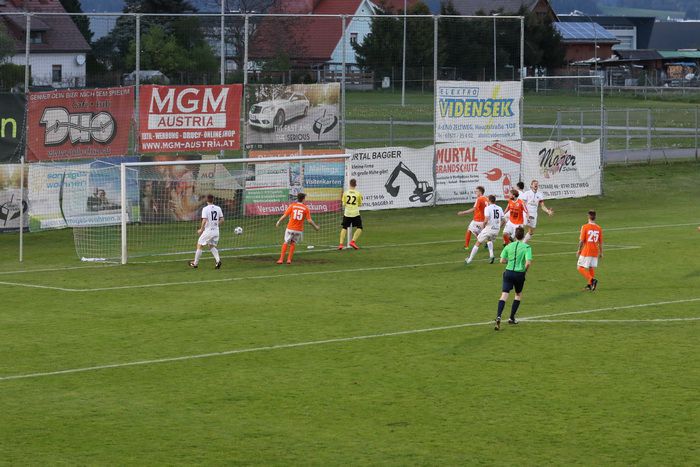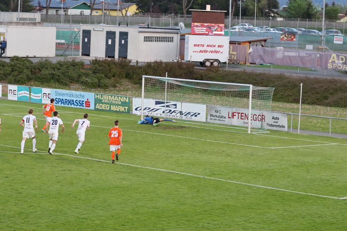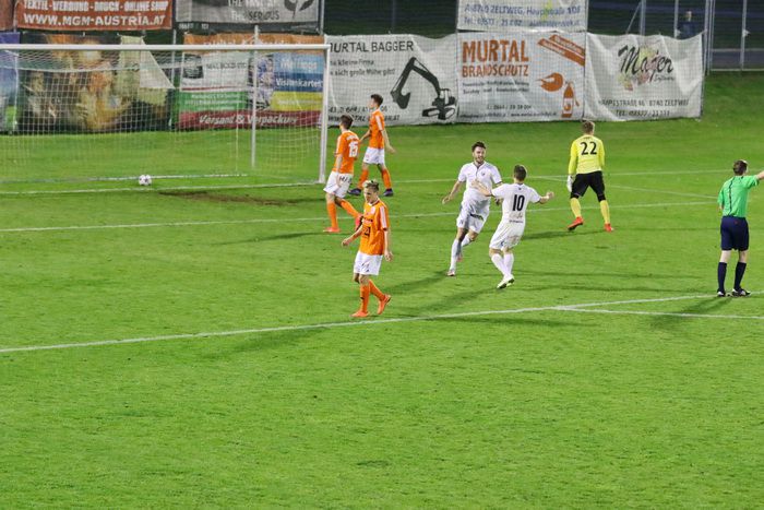 Bei einem hohen Ball patzte in der 27. Minute der gegnerische Torhüter, Kniewallner und Klenner versäumten den erfolgreichen Abschluss. Nach einem Diagonalpass von Ritzmair kamen die Gastgeber über die rechte Seite in den Strafraum und Markus Zmugg vollendete die schöne Angriffsaktion mit dem Tor zum 1:1-Ausgleich (29.).