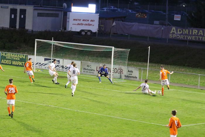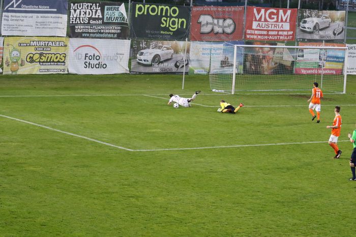 Nach Wohlmuth-Vorlage läuft Kniewallner in den Strafraum und scheitert an Tormann Pripfl...