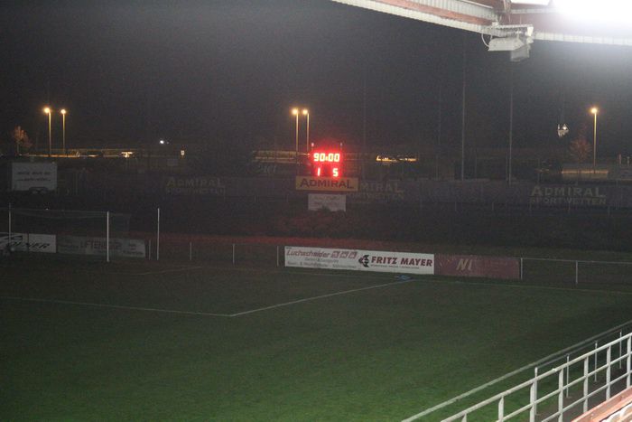 Die Anzeigetafel präsentiert im bereits finsteren Aichfeldstadion das Endergebnis.