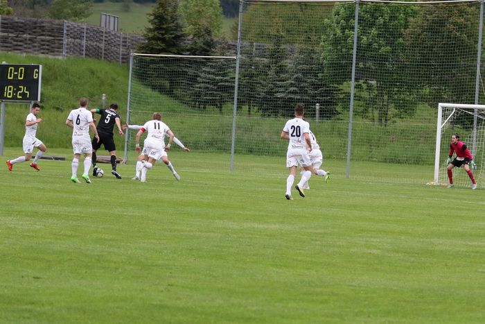 Ein Freistoß von Matthias Schadler landete in den Armen von Torhüter Kohlmaier (17.). Oliver Wohlmuth schoss in der 25. Minte aus halblinker Position links am Tor vorbei. Nach einer Flanke von Daniel Haas hatten die Gastgeber Mühe, den Ball wegzubefördern. Nach einem Eckball von Matthias Schadler köpfelte Christoph Haas am Tor vorbei, beim nächsten Eckball von Schadler konnte Goalie Kohlmaier den Kopfball von Christoph Haas abwehren, Hassler konnte befreien.