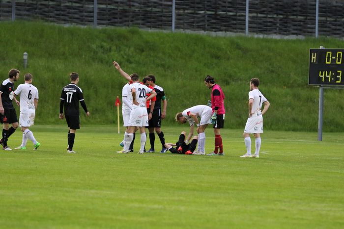 Auf der anderen Seite konnte Roth ohne Mühe einen Schuss von Mark Schranz aus rund 12 m halten (36.). Auch bei einem Wohlmuth-Schuss aus rund 20 m war Roth auf dem Posten. Einen Freistoßball von Lukas Hasler köpfelte Dominic Hassler rechts am Tor vorbei (40.). Kurz vor der Pause verletzte sich Mark Schranz bei einer Angriffsaktion und musste mit einer Kneverletzung ins Spital gebracht werden.