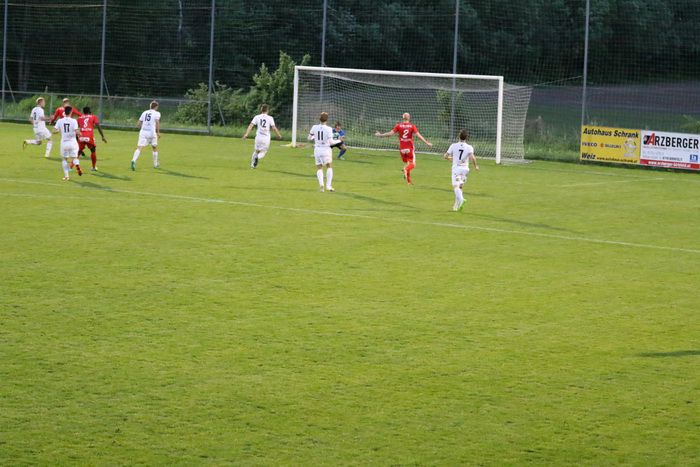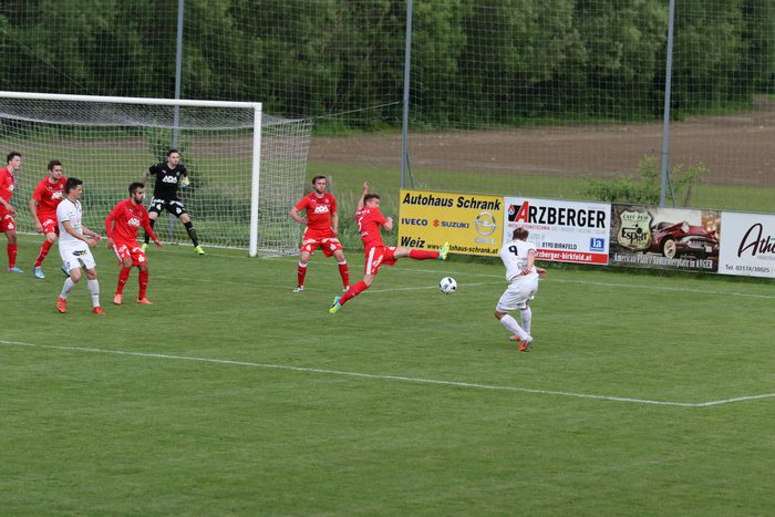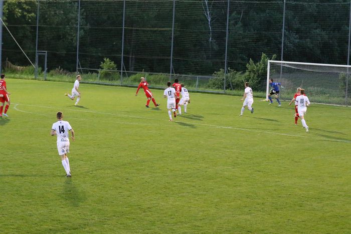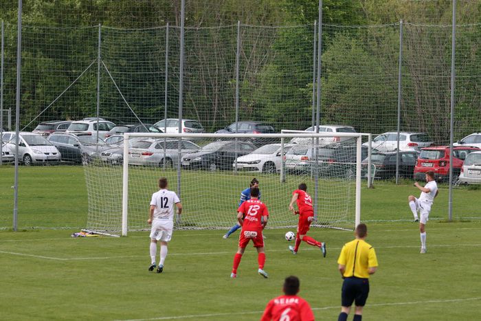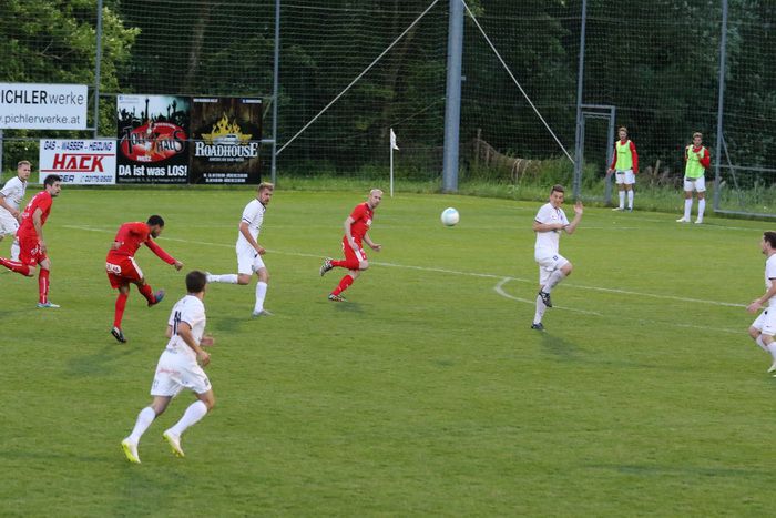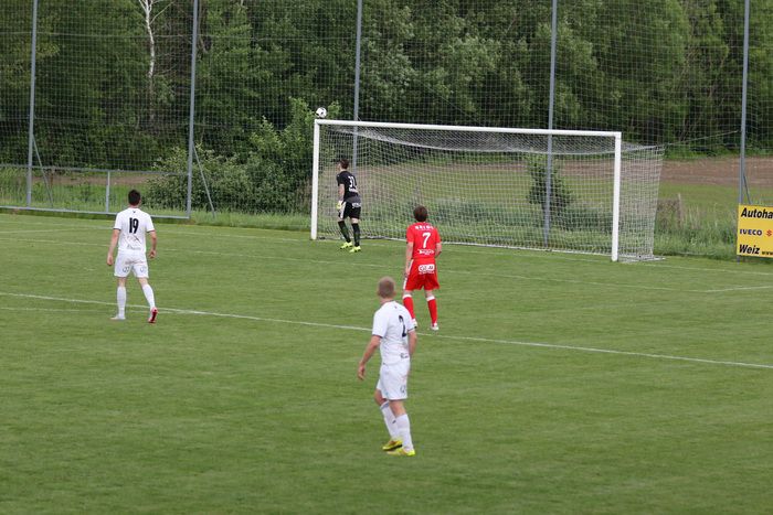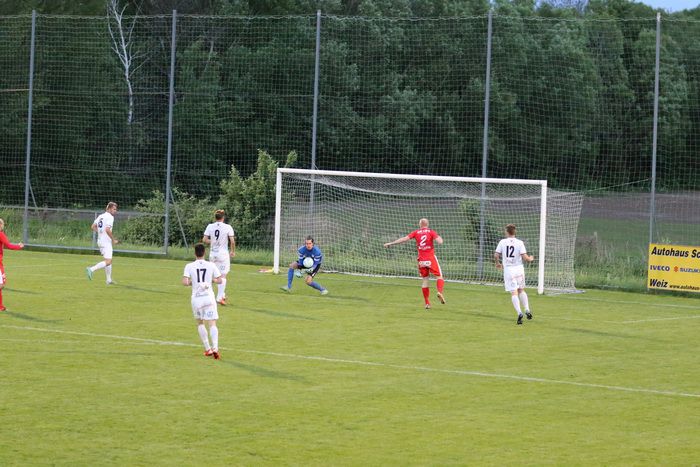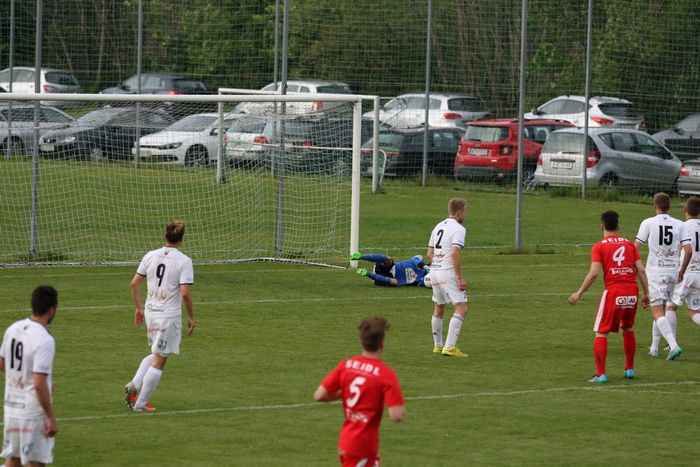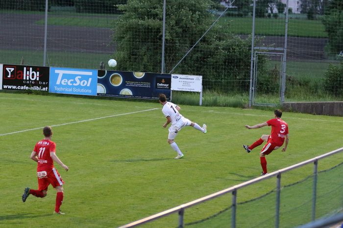 Ein weiterer Angriff der Gnaser führte in der 36. Minute zum Erfolg. Christian Schadler versuchte aus rund 20 m den Abschluss und traf genau ins linke Kreuzeck. Ein Supertor zur 1:0-Führung für Gnas.