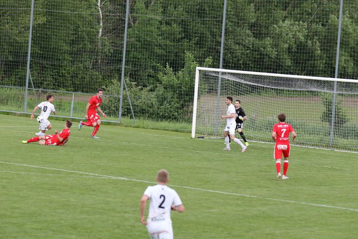 In der 40. Minute versucht Lukas Hirner (Nr. 5) den Abschluss...