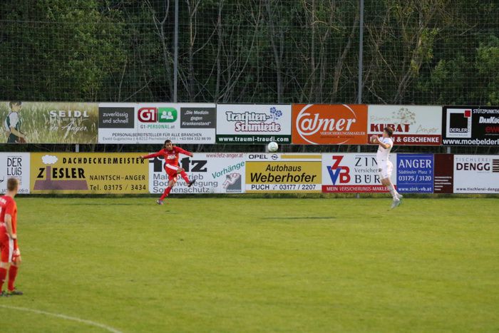 In der 6. Minute wurde ein Freistoßball von Heiko Wohlmuth von Anger-Kapitän Emmanuel Atangana in Richtung eigenes Tor, zur Ecke geköpfelt. In der 20. Minute wurde ein Wohlmuth-Schuss aus 20 m gefährlich zur Ecke abgefälscht. Nach dem darauffolgenden Eckball wurden Schüsse von Christian Schadler und Daniel Haas von Verteidigern geblockt (20.).