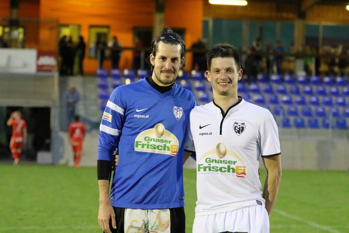 Hatten großen Anteil am Sieg: Der Goldtorschütze Christian Schadler (rechts) und Keeper Alex Roth.