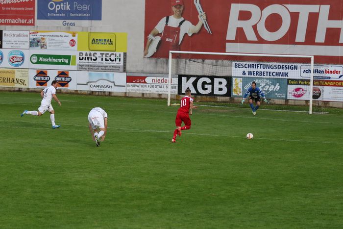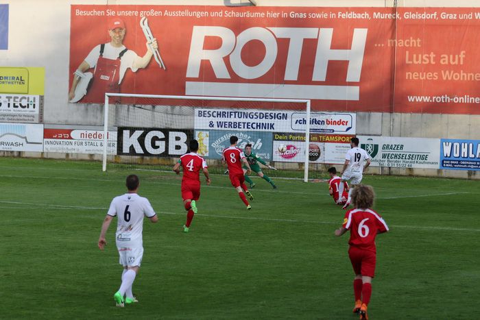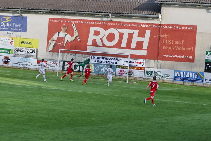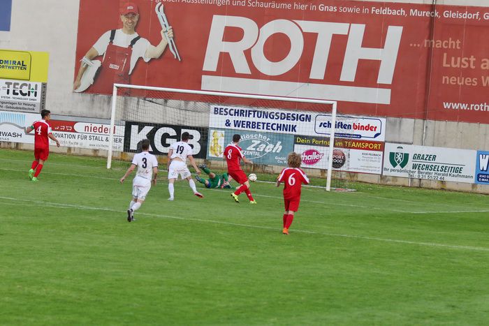 Wenig später stürmte der Gnaser Oliver Fink nach schönem Steilpass über die rechte Seite in den Strafraum und legt quer zum mitgelaufenen Raphael Kniewallner, doch Kniewallner verfehlte das Tor, er schoss drüber (14.).