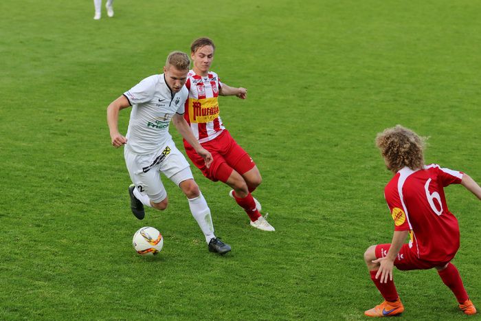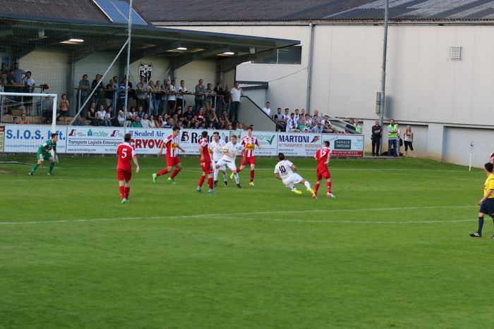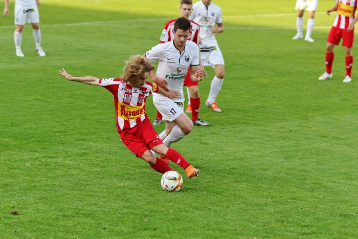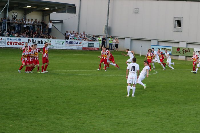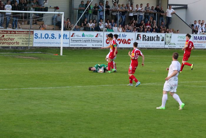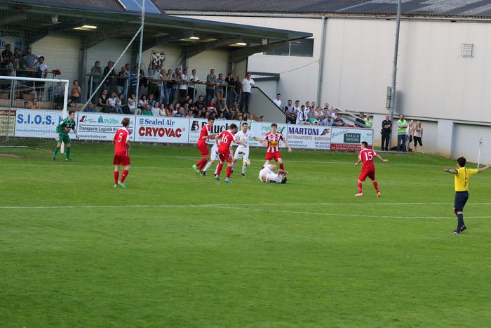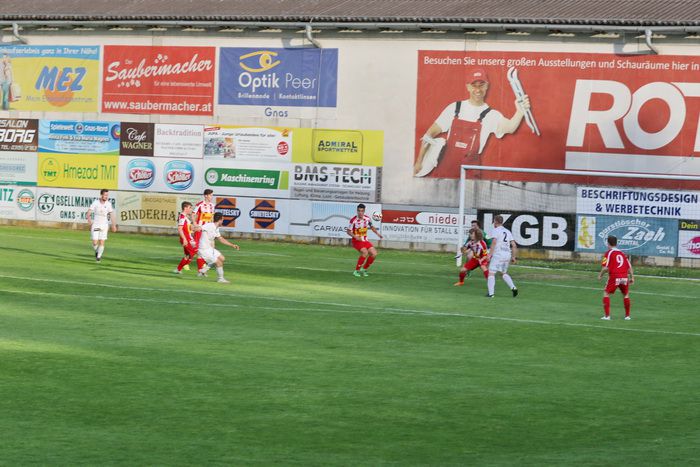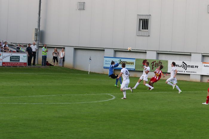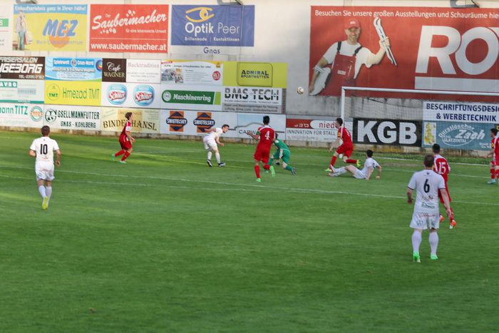 In der 6. Minute kam Raphael Kniewallner am herausgeeilten gegnerischen Torhüter vorbei und stürzte, rappelte sich auf und legte zurück zu Oliver Fink, aber der Stürmer beförderte das Leder aus 12 m über die Querlatte.
