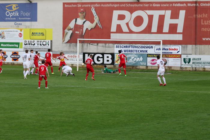 In der 72. Minute konnte Gnas-Keeper Roth nach einem Sololauf vor Edin Bahtic mit Fußabwehr im letzten Moment rettend eingreifen. Die Gnaser versuchten weiter, die Entscheidung herbeizuführen, das öffnete aber Platz für Konter. In der 92. Minute kamen die Gäste durch den Torschützen zum 2:2, Johannes Felsner noch zu einem Lattentreffer.
