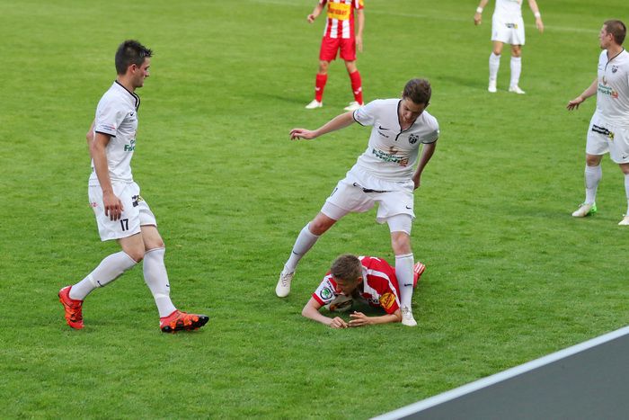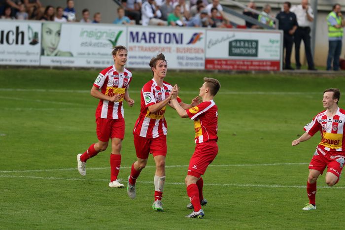 In der 92. Minute trifft der Torschütze zum 2:2, Johannes Felsner (Nr. 5) noch die Querlatte.