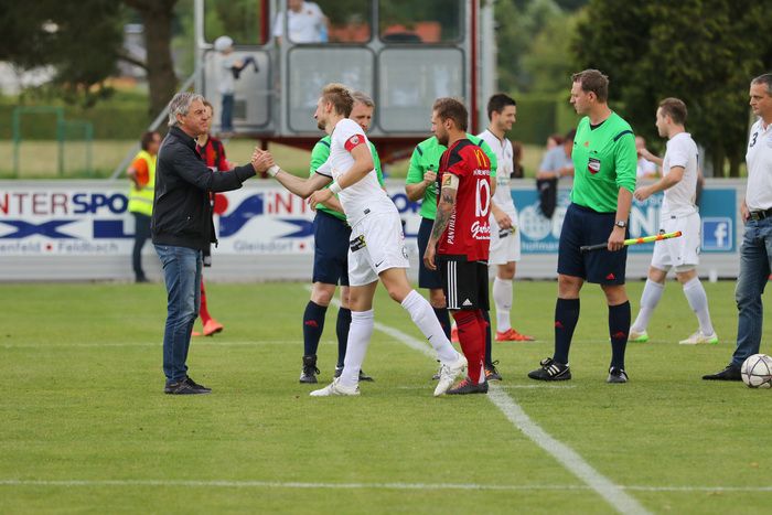 Handschlag zwischen Gnas-Kapitän Christoph Haas und Walter Schachner.