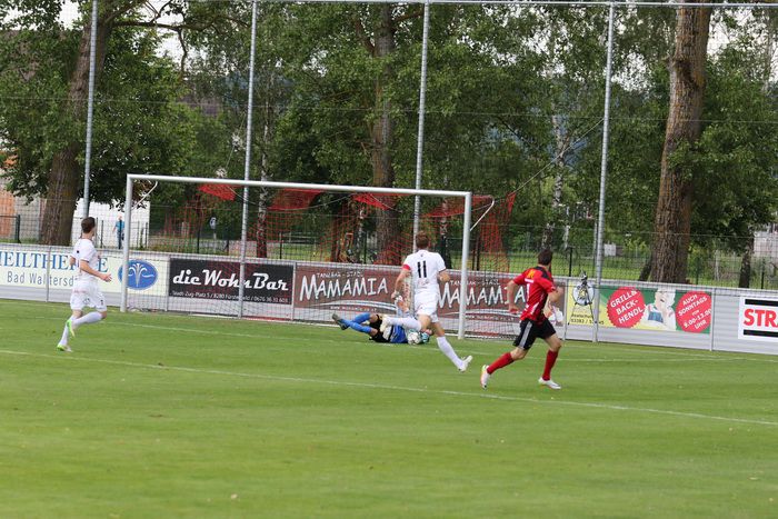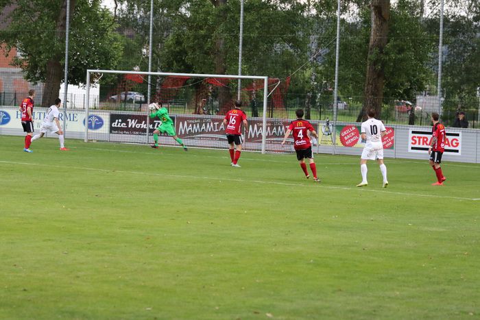 Auf der anderen Seite verfehlte ein Kniewallner-Schuss das gegnerische Tor doch um einiges (25.). Nach einem Angriff der Hausherren über die linke Seite donnerte Christian Scheer das Leder über die Querlatte (30.).