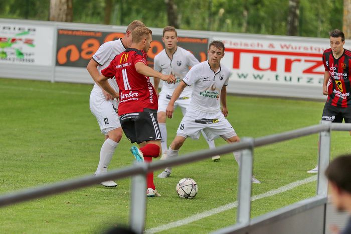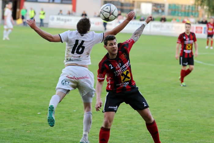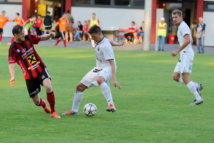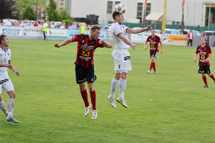 Nach einer Johannes Fink-Flanke kann Michael Grasser (Nr. 11) vor Raphael Kniewallner zur Ecke retten (73.).