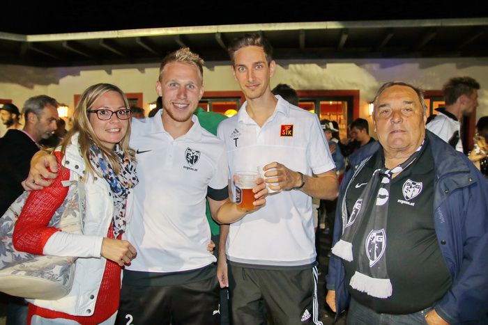 Stefan Klenner (2.v.links) mit Freundin Sandra Trummer, Fürstenfeld-Tormann Philip Stocker und Sepp Zach.