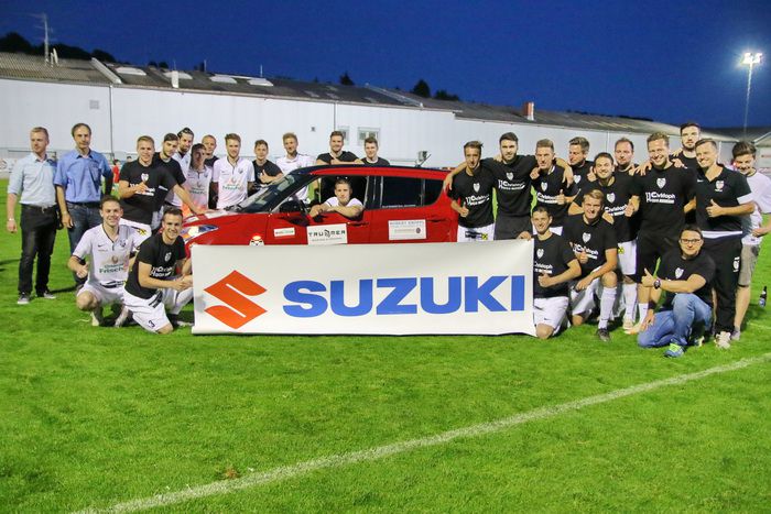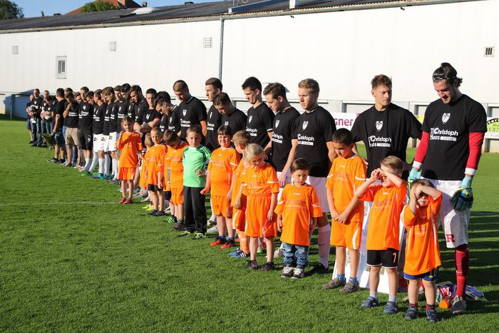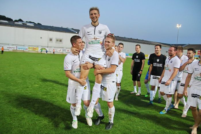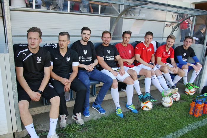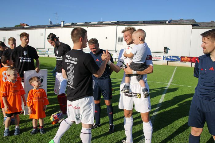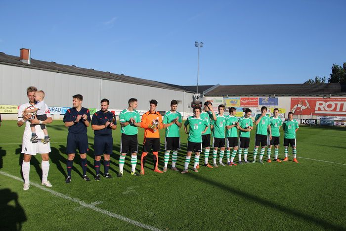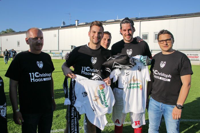 Gnaser Spieler und Funktionäre treten mit schwarze Leiberl zur Verabschiedung des Kapitäns Christoph Haas auf.