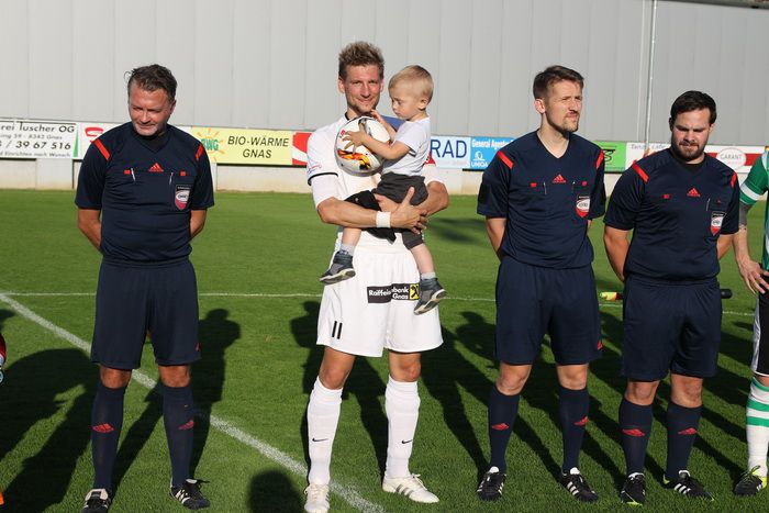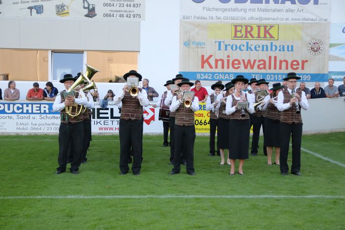 Mit einem torlosen Remis ging es in die Halbzeitpause. Die Marktmusikkapelle Gnas spielte auf und die Nachwuchsmannschaften U16 und U12 A, die den Meistertitel errungen haben, wurden den Fans vorgestellt.
