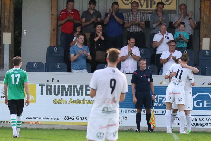 Zum letzten Saisonspiel kamen gut 500 Besucher ins Gnaser Stadion, um die erfolgreichste Saison der Vereinsgeschichte (3. Platz mit 54 Punkten) und den Abschied von Kapitän Christoph Haas, der über 25 Jahre für den USV Gnas aktiv war, zu feiern. Mit Christoph Haas verabschiedeten sich auch Torhüter Alexander Roth und Stürmer Stefan Strohmaier (9 Tore), die im Herbst in Florida (USA) ein Studium beginnen wollen.