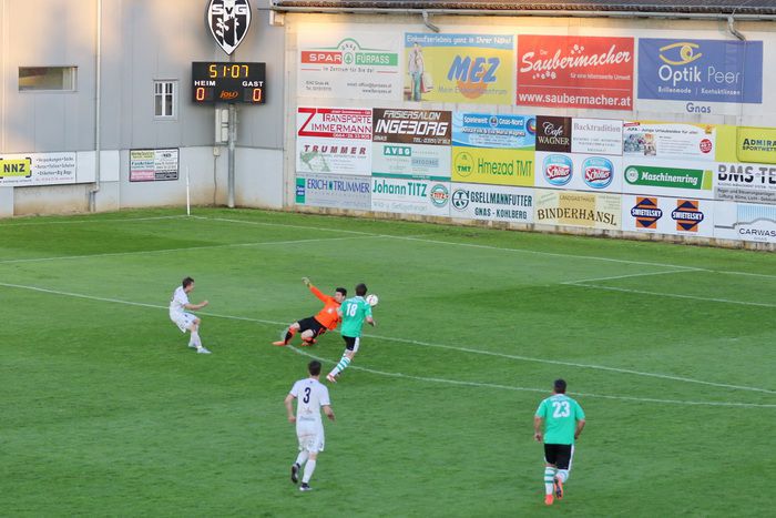 Obwohl es in diesem Match nur mehr um die Statistik ging, sahen die Zuschauer über 90 Minuten ein flottes und abwechslungsreiches Match. Erstmals musste Roth in der 13. Minuten im Herauslaufen eingreifen, er setzte sich hintereinander gegen Vollmann und Partl durch. In der 18. Minute hatten die Gnaser bei einem Lattenschuss des Gegners allerdings Glück.