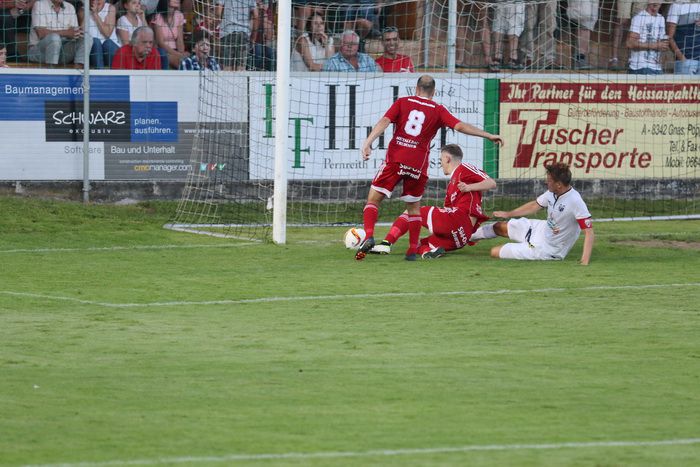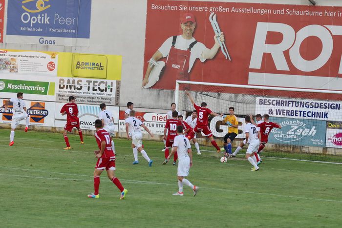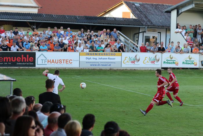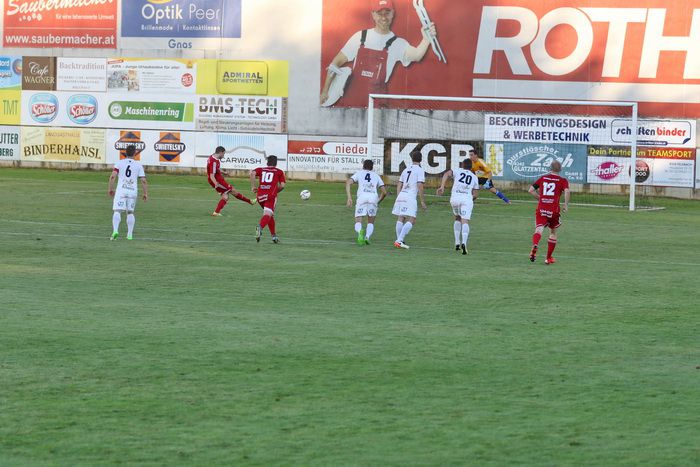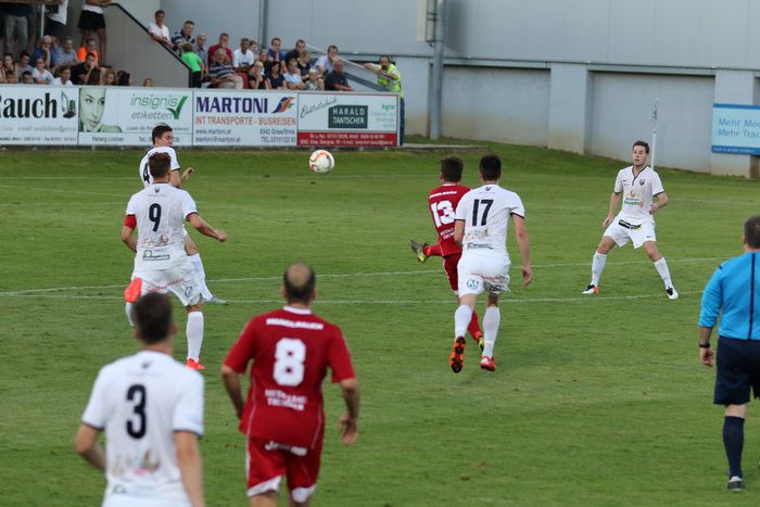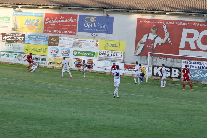 In der Anfangsphase gab es vorerst ein Abtasten der Teams und das Spielgeschehen fand hauptsächlich zwischen den Sechzehnern statt. In der 11. Minute gab es die erste Möglichkeit für die Heimischen, als Matthias Schadler zum Freistoß antrat. Der scharfe Schuss zog aus rund 25 m, links am Tor von Rasim Memic vorbei ins Torout.