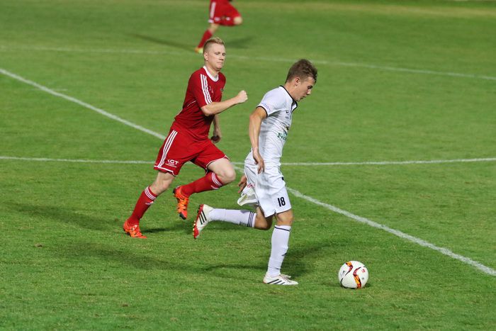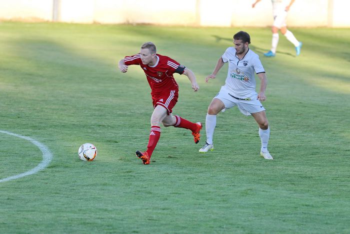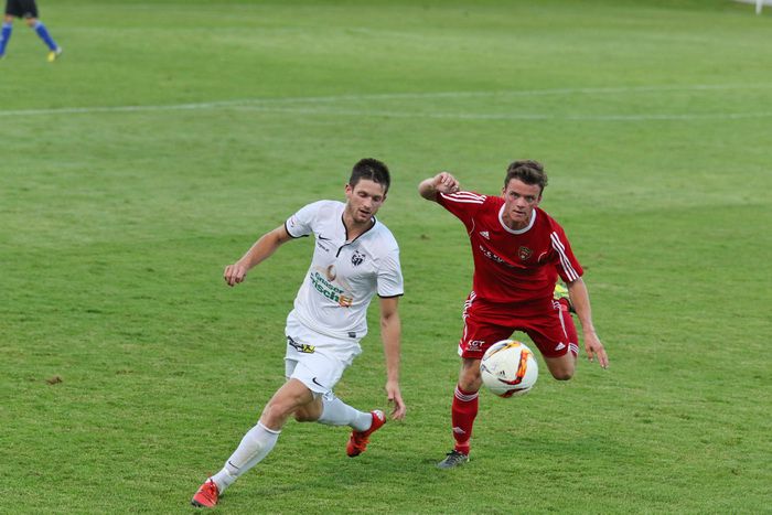 Gnas-Neuzugang Elias Niederl im Duell mit seinem Ex-Kollegen Nejc Omladic.