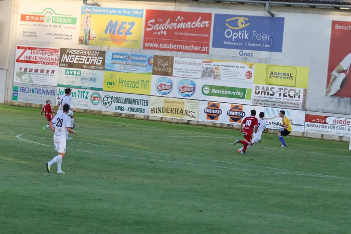 In der 47. Minute flankte Stefan Klenner zur Mitte, Maxi Opferkuch setzte das Leder links am Tor vorbei. Wenig später versuchte Gleichenberg-Kapitän Nejc Omladic aus großer Entfernung, Gnas-Keeper Stocker mit einem hohen Ball zu überraschen, zum Glück fand der Ball nicht den Weg ins Tor (49.). In der 59. Minute kam Gnas-Verteidiger Benjamin Eder-Halbedl nach seiner langen Verletzungspause erstmals in diesem Jahr zum Einsatz - als Angreifer.