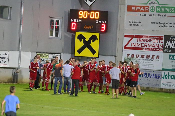 In der 82. Minute schoss Gnas-Stürmer Raphael Kniewallner knapp rechts am Tor vorbei. Die Gäste kamen in der Folge noch zu zwei weiteren Chancen. Nach schönem Pass in die Tiefe lief Leonhard Kaufmann der Gnaser Abwehr davon, Rene Wagist konnte dem Ex-Profi im Strafraum im Zusammenspiel mit Stocker gerade noch den Ball abnehmen. Ein 25-m Schuss von Nejc Omladic wurde in der 90. Minute noch zur Ecke abgefälscht. Der folgende Eckball brachte nichts ein. Nach 94 Minute beendete Schiedsrichter Birnstingl unter großem Jubel der Gäste das Derby.