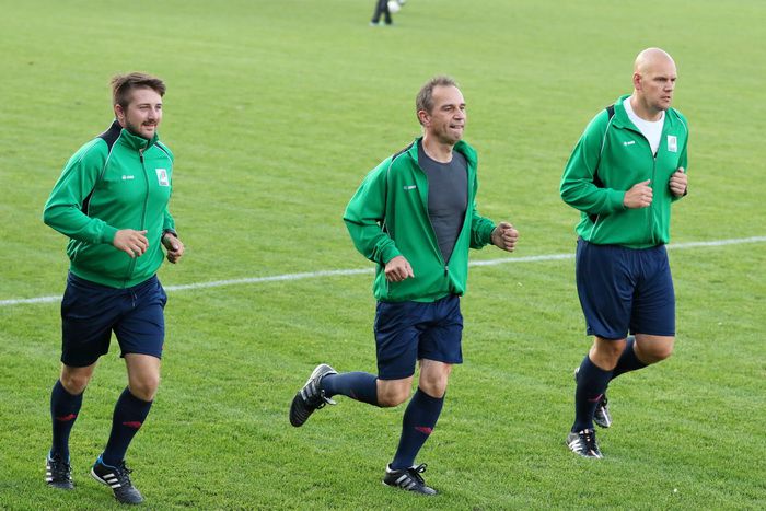 Schiedsrichter Wilhelm Brunner mit den Assistenten Duschek und Schalk.