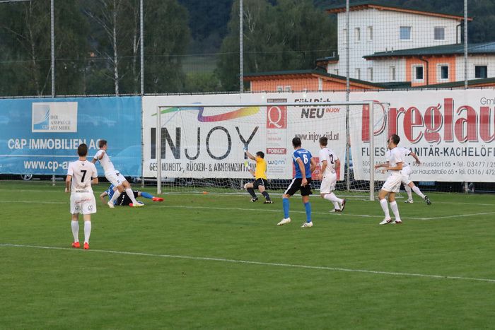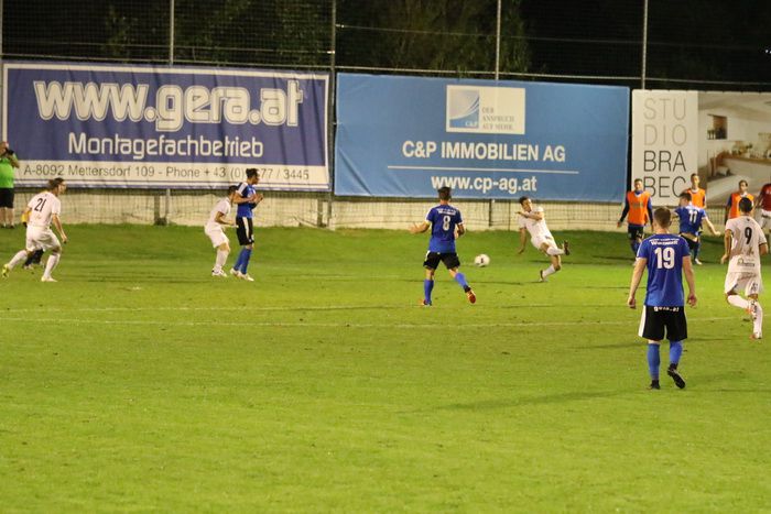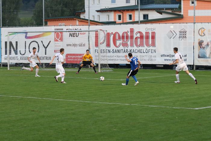 In der 42. Minute kam Lukas Stadler nach einer Horvat-Flanke völlig frei zum Kopfball, der Ball zog knapp an der linken Stange vorbei ins Torout. Kurz darauf konnte Gnas-Goalie Stocker einen Fuchshofer-Schuss aus spitzem Winkel per Fußabwehr klären (44.).