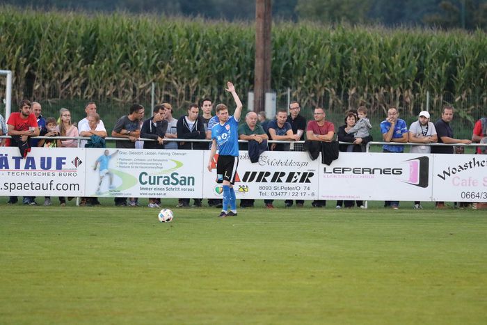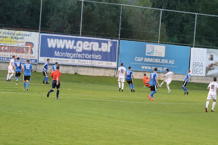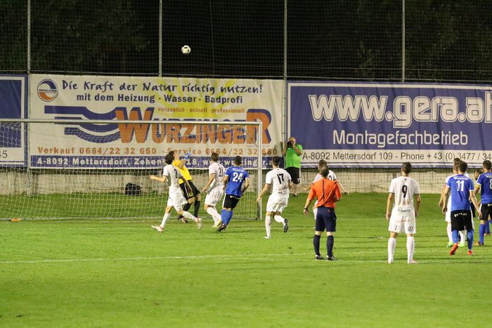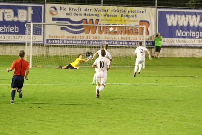 Nach Angriff der Mettersdorfer über die rechte Seite flankte Alexander Fuchshofer zur Mitte, den Kopfball von Alexander Rother konnte Stocker über die Querlatte hechten (16.). Bei einem Rossmann-Schuss war Stocker ebenfalls auf dem Posten (21.).