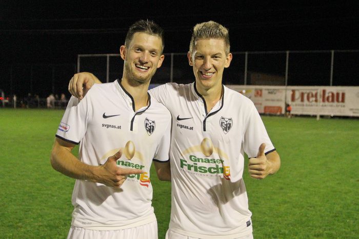 Die beiden Innenverteidiger DI Rene Obendrauf (rechts) und Christian Schadler trafen für Gnas.