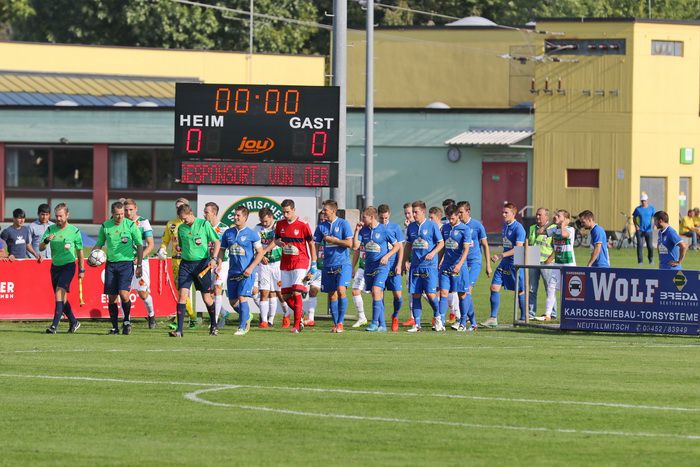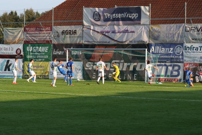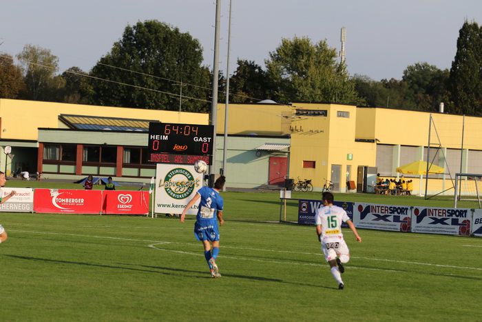 Beide Mannschaften begannen recht vorsichtig und so dauerte es relativ lange, bis die Zuseher eine erste, nennenswerte Tormöglichkeit zu sehen bekamen. In der 19. Minute war es soweit. Matthias Schadler bediente mit einem schönem Pass Michael Mandl. Aus 18 m versuchte Mandl den Abschluss, Torhüter Patrick Krenn konnte den Schuss zur Ecke abwehren. Beim nachfolgenden Eckball kam Christian Schadler, neben der zweiten Stange stehend, nach einem gewonnenen Kopfballduell am 5er zum Abschluss, traf das Tor aber nicht.