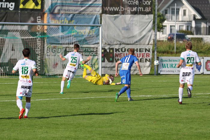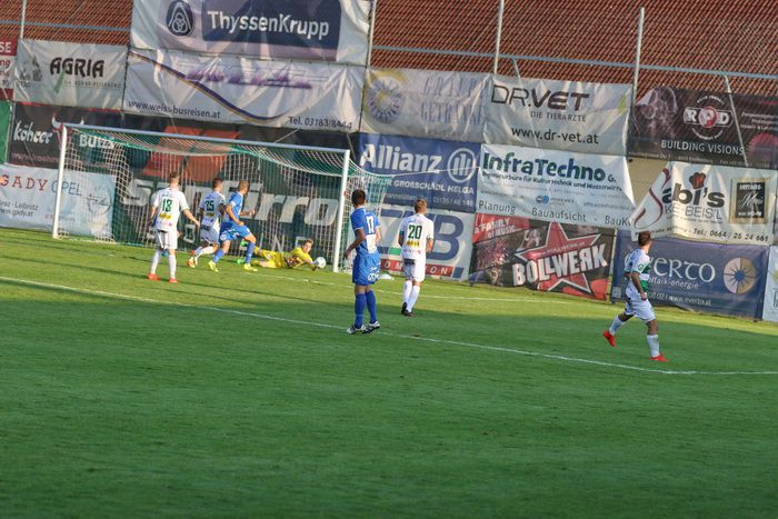 Nach einem Distanzschuss von Stefan Klenner hatte Goalie Krenn Mühe, den Ball über die Querlatte zu befördern (24.). Einen Freistoß von Matthias Schadler konnte Krenn in der 33. Minute halten.