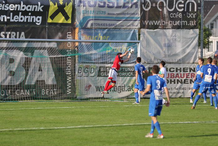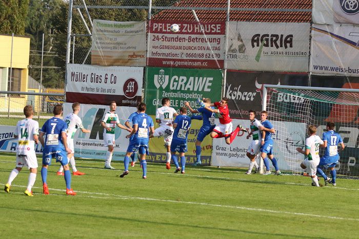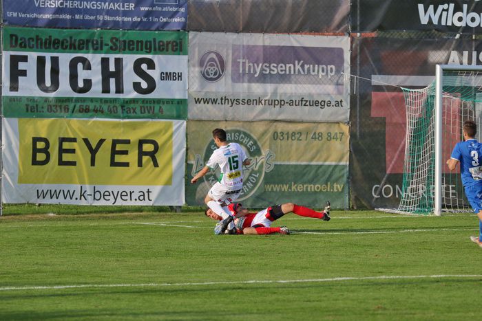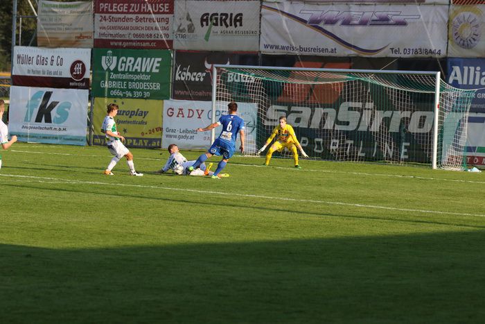 Gleich nach der Pause kamen die Hausherren zu ein paar Halbchancen. Eine Flanke von Lukas Gabbichler verlängerte Benjamin Teuschler mit dem Kopf, Gnas-Keeper Stocker war auf dem Posten (46.). In der 48. Minute warf sich Goalie Stocker dem anstürmenden Daniel Krempl vor die Füße und nahm ihm den Ball ab.