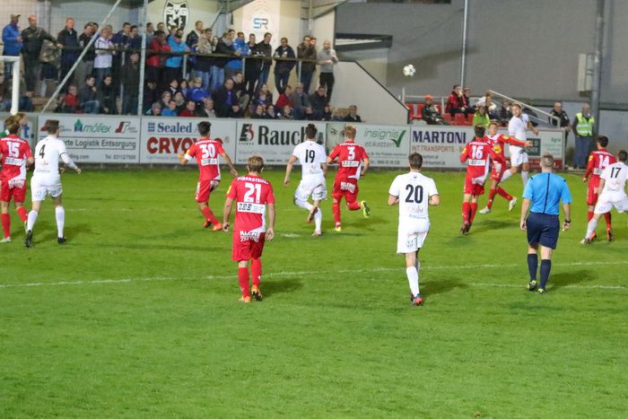 Nach einer Klenner-Flanke köpft Opferkuch (Nr. 20) links am Tor vorbei (11.).