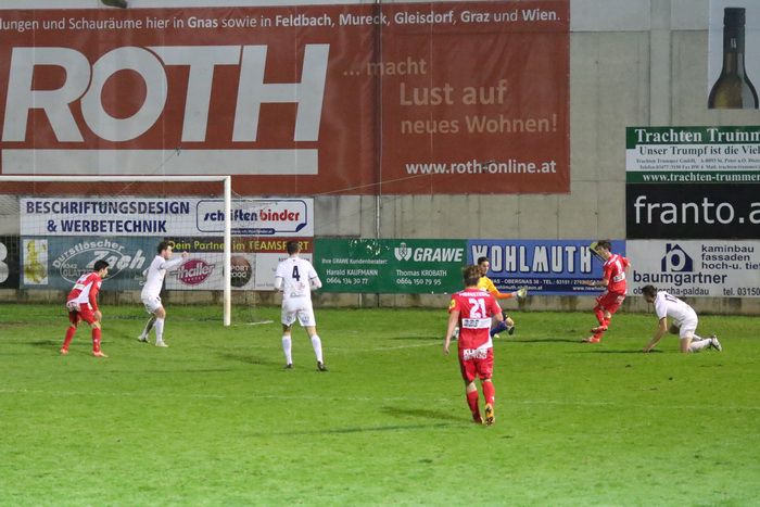 Kurz vor dem Pausenpfiff kamen die Gnaser noch zu einer Chance. Matthias Schadler hob einen Eckball in den Strafraum, Rene Obendrauf köpfte aufs Tor, Petrovcic holte den Ball aus der Ecke, den Nachschuss von Wohlmuth konnte Petrovcic halten.