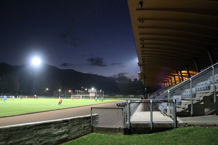 Das Murinsel Stadion im Scheinwerferlicht.