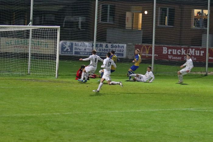 Nach einem Angriff der Brucker über die linke Seite fiel der Abschluss von Flamur Mehaj zu schwach aus, sodass Stocker keine Mühe hatte, den Ball zu halten (31.). Bei einem weiteren Vorstoß der Brucker war der Gnaser Goalie schneller am Ball als der anstürmende Flamur Mehaj. In der 41. Minute fanden auch die Gnaser eine Möglichkeit vor, aber Kniewallner wurde nach Fink-Hereingabe von der linken Seite und Wohlmuth-Kopfball, von Torhüter Gröblinger gestoppt.