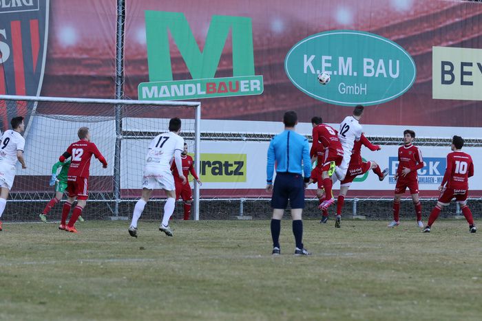 Christian Schadler köpfelt einen Wohlmuth-Freistoß übers Tor von Memic (83.).