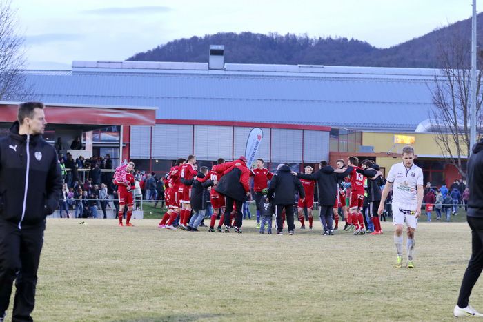 Großer Jubel bei den heimischen Spielern und Fans nach dem Schlusspfiff.