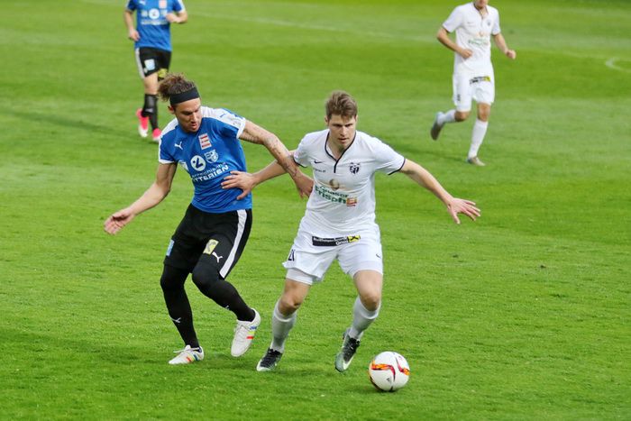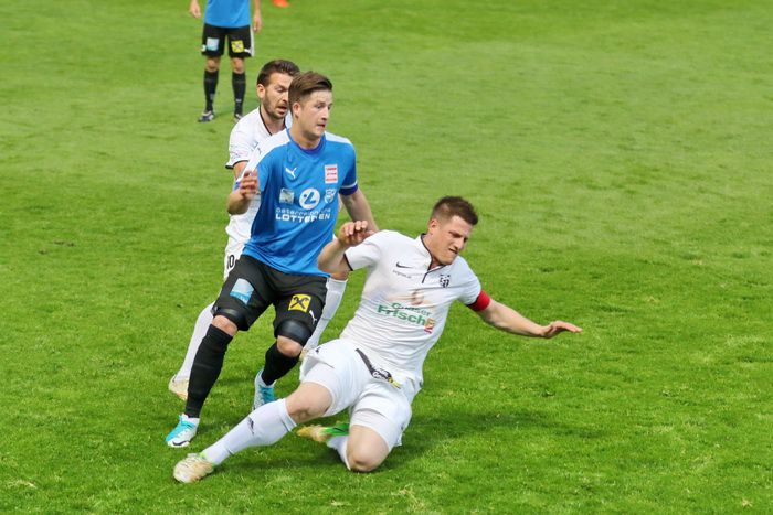 Raphael Kniewallner geht bei einem Zweikampf zu Boden, kein Elfer (94.).