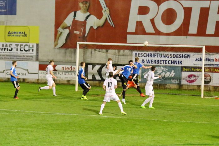 Nach einem weiten Einwurf verlängert Friedl per Kopf, Heiko Wohlmuth köpfelt drüber....