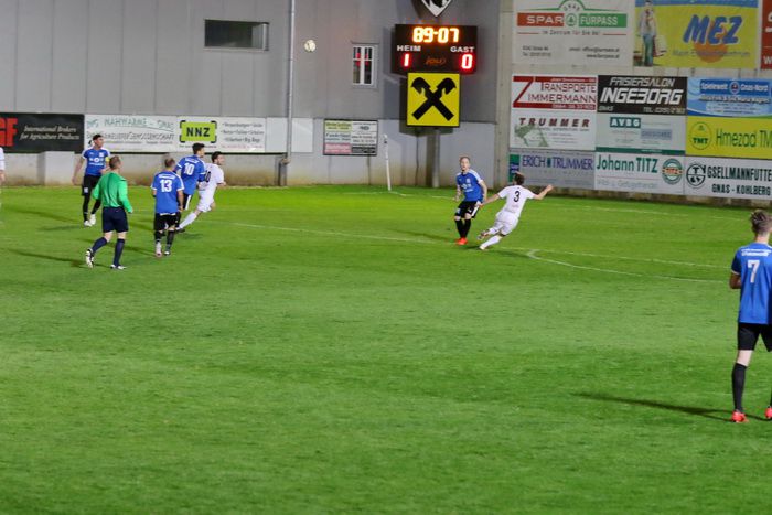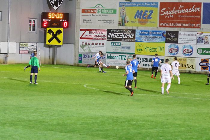 Einen weiten Outeinwurf von Matthias Schadler verlängerte David Friedl per Kopf, Heiko Wohlmuth köpfelte den Ball knapp über die Querlatte (79.). In der 90. Minute kam der nächste Auftritt von Raphael Kniewallner. Maximilian Opferkuch spielte auf der linken Seite einen hohen Pass zu Raphael Kniewallner und mit einem satten Schuss ins lange Eck gab der Mittelfeldspieler dem Gäste-Torhüter das Nachsehen. Mit dem Tor zum 2:0 war das Spiel praktisch entschieden.