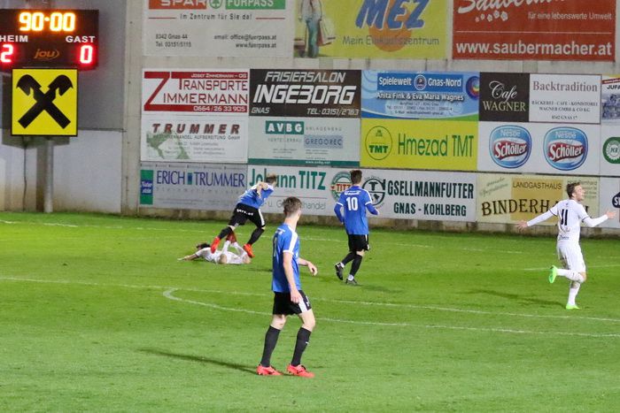 In der 95. Minute stellte David Friedl nach Hereingabe von Maximilian Opferkuch auf 3:0. Augenblicke später beendete Schiedsrichter Werner Harrer das Spiel. Riesenjubel und große Erleichterung bei den Gnaser Spielern und Fans nach dem ersten Sieg im Frühjahr.