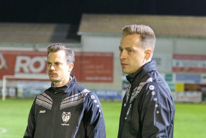 Ein zufriedenes Gnas-Trainerduo nach dem Match. Rechts Trainer Marko Kovacevic, links sein Co-Mario Groznik.