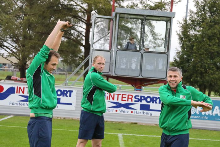 Das Schiedsrichterteam beim Aufwärmen (links SR Mag. Haiger).