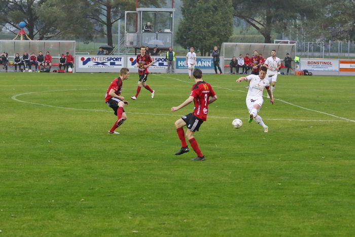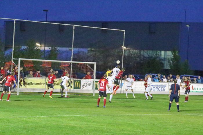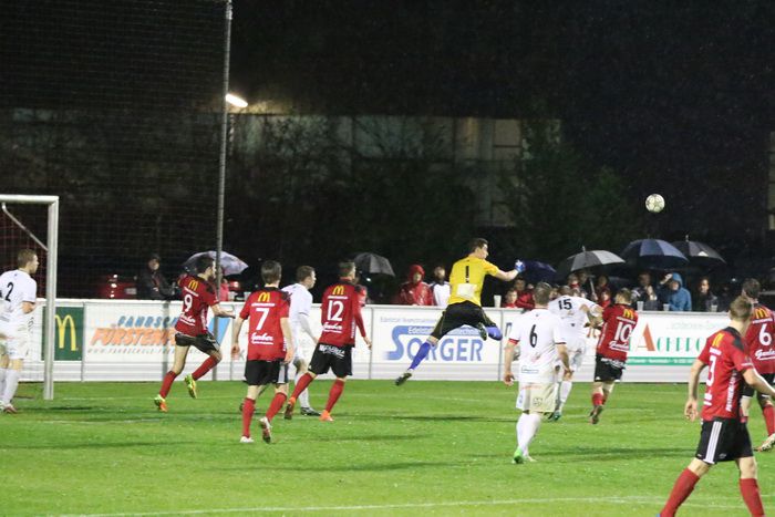 Nach einem weiten Einwurf, den Christian Schadler per Kopf verlängert, bringen die Hausherren den Ball nicht weg...