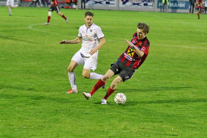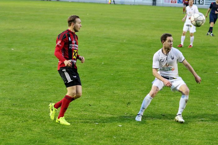 Fürstenfeld-Kapitän Andreas Glaser gewinnt das Laufduell mit Christian Schadler...